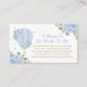 Blue Floral Hot Air Balloon Recipe for Bride to Be Enclosure Card