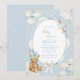 Blue Floral Hydrangea Elegant Bear Baby Shower Invitation