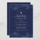 Blue Floral Leaf Boys First Communion Invitation