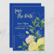 Blue Floral Lemon Wedding Save the Date | Elegant Yellow & Blue Watercolor Card .