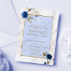 Blue Floral Marble Spanish 1st Birthday Baptism Invitation