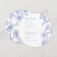 Blue Floral menu card featuring a border of blue hand drawn flowers. Personalize with your information or click "Click to customize further" to edit font styles, size and colors.