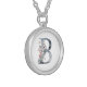 Blue Floral Monogram Initial B Silver Necklace