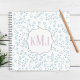 Blue flower design Pattern. This design features a monogrammed, simple, pink, trendy, chic, stylish, blue, monogram initial, with blue floral, a custom personalized notebook.