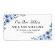An elegant blue Floral design with watercolor flowers and elegant script text. The address and name can be personalized.