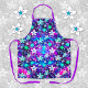 Blue Floral Pattern Apron - Deepspace / Universe - Detailed Edelweiss Flower Geometric Apron - Flower Bouquet Apron