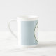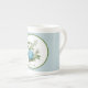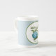 Beautiful bone china mug with a blue background and a botanical floral motif of hydrangeas in a central circular panel. Personalized with a name. Would make a perfect gift or accent for your vintage style home. For more home accessories see the Knots & Kisses Shop.