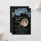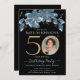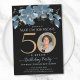 Blue Floral Photo Surprise 50th Birthday Party Invitation