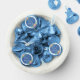 I ordered these for my blueberry themed baby shower which is only 9 days away. They seemed to be packaged well but after I pulled the bag out of the package I’m finding holes in the wrappers. Without opening the bag they were shipped in I took pictures, it was very obvious that more than half of the candy has a ripped wrapper or is already opened on the top. I can not serve my guests half opened candy, do not waste your money on this product. The labels however are beautiful and I’m now wishing I purchased only labels for the kisses and bought my own candy at walmart. .