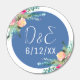 Personalized wedding chocolate kisses with couple's initials with pretty pink floral accents and blue center with white font. Elegant floral wedding theme.