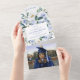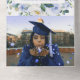 This photo graduation announcement card features blue and white watercolor florals with all the graduation party details in the center.