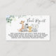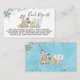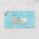 Sweet safari baby animals themed baby shower book request insert for a baby boy featuring a watercolor giraffe, elephant, zebra and lion. This safari baby shower book request also features some foliage and blue flowers.