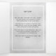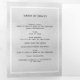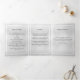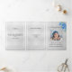 An elegant tri-fold program. A faux silver background, a white frame, blue forget-me-not flowers and space for a photo. Personalize and add name, dates and your text.