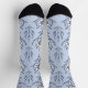 These blue floral socks showcase a seamless pattern of delicate, symmetric blooms in soft blue tones. The balanced design creates a harmonious, elegant look, making them a stylish accent for any outfit. Perfect for adding a subtle touch of artistry and charm to your everyday wear.