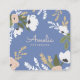 Elegant and feminine business card design featuring white and blush pink flowers on a blue background.