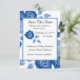 Blue Floral Stylish Rose Chic Simple Wedding Save The Date