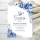 Blue Floral Surprise 50th Birthday Party Invitation