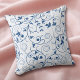 Blue Floral Swirl Pattern on White Throw Pillow