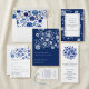 This elegant blue and white floral RSVP card features a classic all over botanical pattern on the reverse and a coordinating floral header on the front for a timeless, romantic look. The layout makes replying simple, with checkboxes for attendance plus space for guest count and dietary requirements perfect for keeping responses clear and organised. Ideal for garden, coastal, or classic weddings, this design pairs beautifully with blue floral stationery suites and “something blue” themes.