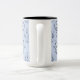 Add a touch of style to your morning routine with this durable ceramic mug featuring a seamless soft blue floral design in a symmetric pattern. The contrasting interior and handle give it a modern two-tone look, making it perfect for coffee, tea, or hot chocolate. Ideal as a unique gift for coffee lovers.