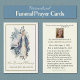Remember your loved ones in prayer with this beautiful religious image of the Virgin Mary, Our Lady of Grace with a blue floral bouquet. All text and fonts can be modified.