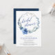 Blue floral watercolor wreath bridal shower invitation