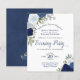 These affordable, budget friendly evening party invitations are perfect for inviting your friends and family to celebrate your wedding without spending a fortune on the invitations. The elegant design features hand painted watercolor roses in shades of dusty blue, navy, and indigo, with a bevy of eucalyptus leaves and greenery. The typography features fancy script calligraphy, and the back is a deep marbled royal or cobalt blue color.