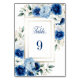 Blue Floral Wedding Table Number