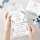 Blue Floral Wedding with Perforated RSVP All In One Invitation