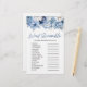 Blue Floral Word Scramble Bridal Shower Game Stationery