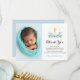 Blue florals and gold cross boy baptism photo thank you card