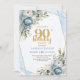 Blue Florals Gold Border 90th Birthday Invitation