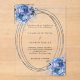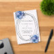 For a winter wedding. A clear, transparent background decorated with blue florals, roses. A faux silver looking frame. Personalize and add your names and details.