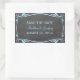 Elegant and trendy Flourish Chalkboard Save the Date Stickers featuring a chalkboard look background and a fancy swirl and leaf art deco border in light blue. Easy to customize, simply add your wedding details. Click "Customize It" to find more personalization options.
