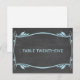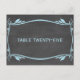 Elegant and trendy Flourish Chalkboard Table Number Postcard featuring a chalkboard look background and a fancy swirl and leaf art deco border in light blue. Easy to customize, simply add the appropriate table number(s) in the text field provided. Click "Customize It" to find more personalization options.