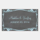 Elegant and trendy Flourish Chalkboard Wedding Stickers featuring a chalkboard look background and a fancy swirl and leaf art deco border in light blue. Easy to customize, simply add your wedding details. Click "Customize It" to find more personalization options.