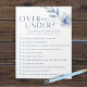 Blue Over or Under Shower Game Pack Notepad. Includes 40 easy tear away sheets. Have your guests guess if the statements are over, under or correct by circling their answer. Featuring beautiful watercolor blue floral flowers. Part of our "something blue before I do" bridal shower collection. Check out other matching games in the shop now!