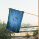 Blue Flower Fantasy Pattern, Abstract Fractal Art House Flag