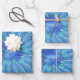 Blue Flower Fantasy Pattern, Abstract Fractal Art Wrapping Paper Sheets