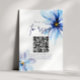 Elegant floral design featuring modern handwritten style script, QR CODE and watercolor blue Flowers on white background.The text can easily be personalized for a unique one of a kind design for your special day.