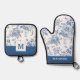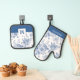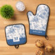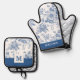 Blue Flower Pattern Oven Mitt & Pot Holder Set