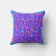 A pretty, floral throw pillow or scatter cushion, with a pattern of bright flowers in purple, turquoise, pink and orange on a royal blue background from a handpainted paper collage by Judy Adamson. You can easily change the background color by using the Edit button.