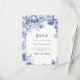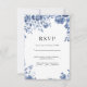 Blue Flower Retro floral wedding RSVP Card