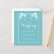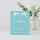 Blue wedding invitation with white text and floral accents along top of thin border. Colors and text are completely editable online with a few clicks but if you need help contact designer at ArtByLiz@gmx.com and card will be customized for you at no extra charge.