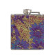 Blue flowers against leaf camouflage pattern hip flask