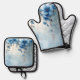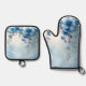 Beautiful Blue Flowers and Pearls Oven Mitt & Pot Holder Set