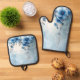 Blue Flowers and Pearls Oven Mitt & Pot Holder Set