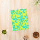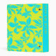 Bright floral art binder with custom text on the spine. A blue flowers, illustrated pattern covers the front and back with a chartreuse background. Text is added to the spine as a book title. Use for recipes, school work, or as a book of drawings. No pages are included in this small binder which takes 5.5 x 8.5 inch paper of your choice.