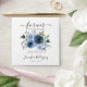 You can honor the life of your loved one by planting seeds in their memory. This design features a watercolor navy dusty blue flowers floral bouquet arrangement and can be personalized with the name of the departed loved one and the birth year and death year. You place a seed packet inside the envelope but you will need to buy those seeds separately.