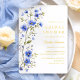 Blue Flowers Bridal Shower Gold Foil Invitation